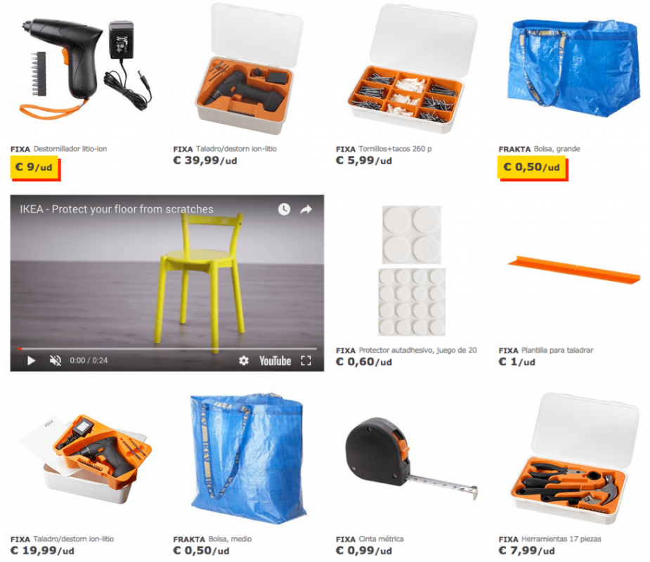 I know, it's a very poor selection and they are low quality products. You'd better put it to me! What I can assure you is that the young customer comes out shopping much more informed than they did years ago. There will be some young people who come into the hardware store for the first time looking for a top of the range electric screwdriver and if you sell them one that exceeds what they were prepared to pay, they may not come back. However, if you give them exquisite, well-informed attention, taking an interest in their needs, asking them about other issues you can help them with, They don't do that at IKEA. One thing IKEA does great, possibly the best, is to inspire, to inspire through the eyes. Do you see that among the product offering there is a video? It explains how to put pads on chair legs so they don't scratch. Simple, but effective. Use video to inspire.